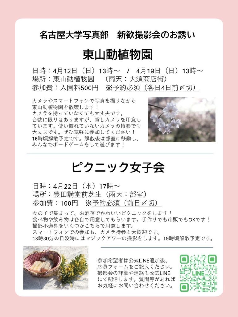 新歓に関するお問い合わせ,撮影会への参加予約は下のリンクから公式LINEの方へお願いします.